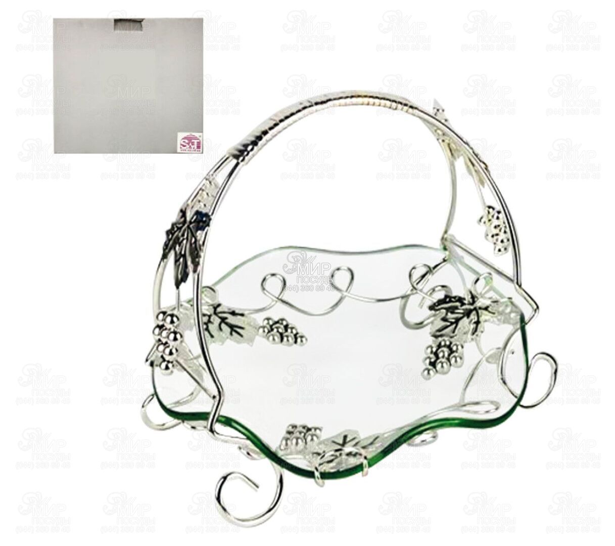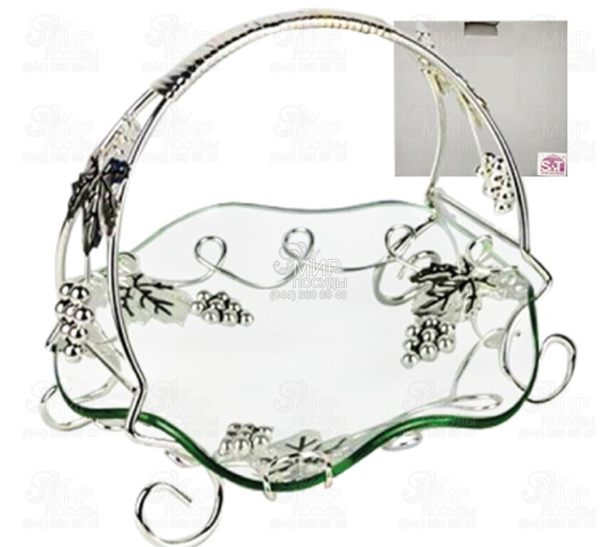 Серия Виноград от украинского бренда S&T – это изысканное сочетание стекла и металла, вдохновленное естественной элегантностью виноградной лозы. Изделия этой коллекции отличаются изящным дизайном с декоративными элементами в виде лозы винограда и листьев, что придает композициям объемности, легкости и особого шарма. Прозрачное стекло создает эффект чистоты и воздушности, позволяя красиво презентовать блюда, десерты или закуски, а металлические детали с благородным блеском подчеркивают премиальный характер изделий. Гармоничное сочетание материалов делает посуду не только функциональной, но и стильным акцентом сервировки. Особенностью серии являются декоративные изящные изгибы и украшения в виде виноградной лозы, что придает изделиям художественной выразительности и делает их похожими на настоящий элемент декора. Такая посуда идеально подходит как для праздничного стола, так и создания элегантной атмосферы во время особых событий.
