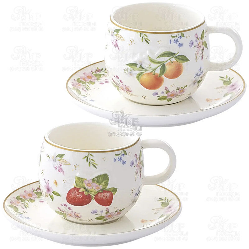 Мир посуды - Столовая посуда - Чашки - Наборы кофейных чашек - Набор чашек для кофе с блюдцами Fancy Fruit Клубника/Персик 120мл R3423#FANF_2