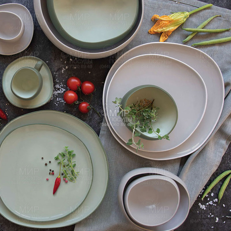 Коллекция Organica от итальянского бренда Easy Life – это сочетание современного дизайна, природных форм и практичности. Она предназначена для тех, кто ценит минимализм, тактильные материалы и стильную сервировку без лишнего декора – как в домашнем пространстве, так и в сегменте HoReCa. Плавные линии, живая геометрия и оттенки зеленого и серого формируют спокойную, гармоничную атмосферу на столе. Матовая наружная поверхность гармонично сочетается с глянцевой внутренней, создавая приятный тактильный и визуальный контраст.