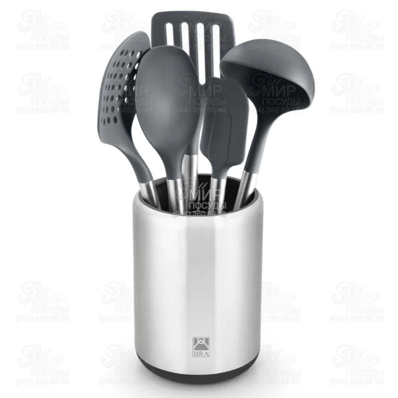 Набор кухонных принадлежностей серии Signature это стильное и практичное решение для современной кухни, сочетающее элегантный дизайн и продуманную функциональность. Комплект предназначен для комфортного приготовления и удобного хранения, позволяя держать все необходимые аксессуары под рукой. Изысканный органайзер из нержавеющей стали гармонично дополняет интерьер кухни, а качественные инструменты из силикона и нейлона бережно контактируют с посудой, не повреждая антипригарные покрытия. Это идеальный выбор для тех, кто ценит порядок, эстетику и долговечность деталей.