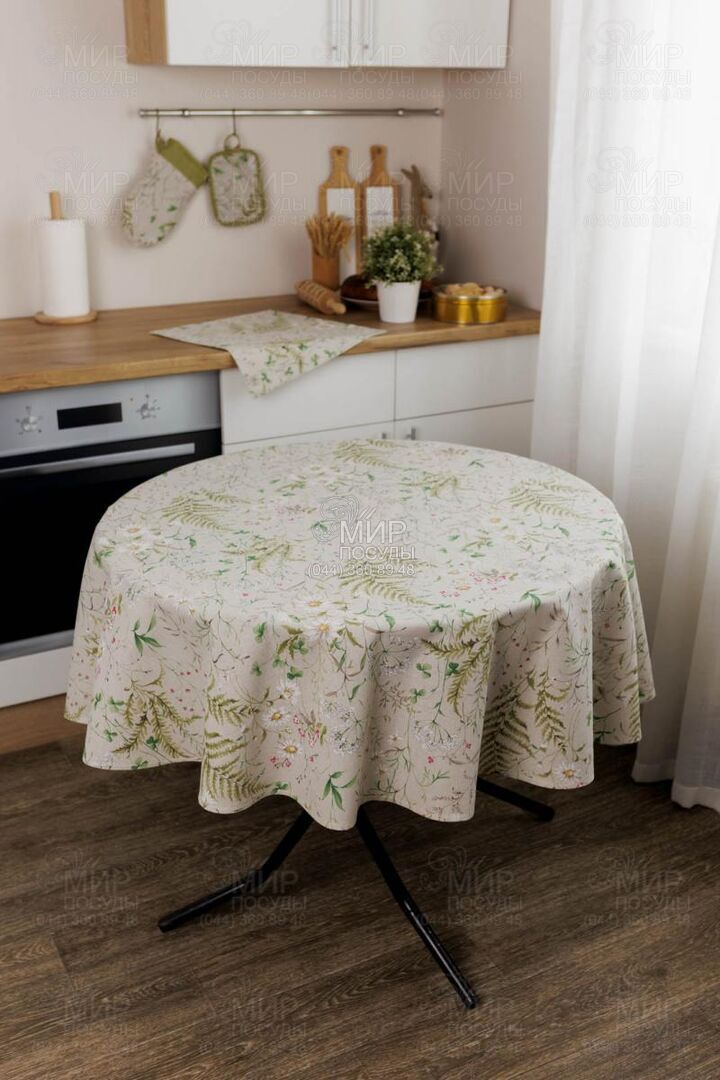 Скатерть серии Herbal от известного украинского производителя Прованс – это сочетание изящных линий папоротника, ромашек и мелких соцветий на приятном фоне натурального оттенка. Дизайн смотрится легко и ненавязчиво, гармонируя как со светлыми, так и деревянными поверхностями. Текстиль бренда Прованс производится из итальянских тканей высокого качества, материал имеет оптимальную плотность, благодаря чему скатерть красиво драпируется по углам стола и сохраняет свою форму. Цвета остаются насыщенными, а принт не теряет четкости даже после продолжительного использования. Скатерть отлично подходит как для ежедневных семейных обедов, так и для праздничной сервировки стола.
