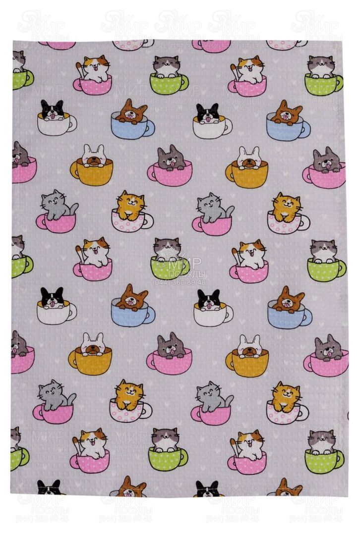 Мир посуды - Домашний интерьер - Кухонные полотенца - Полотенце кухонное вафельное Котята в чашке 37х50см 4823093478435