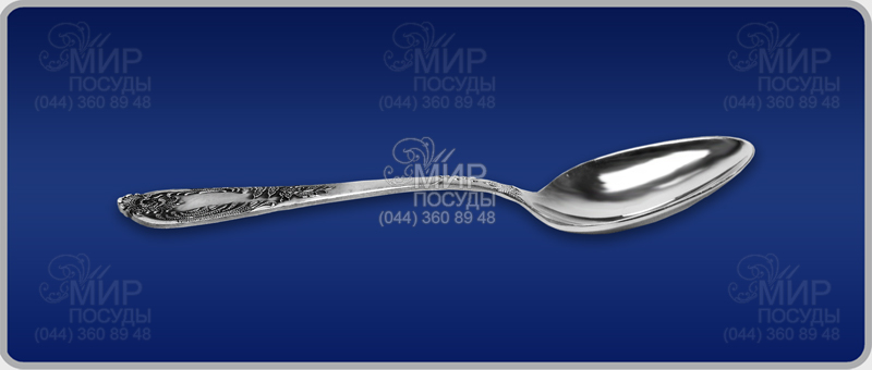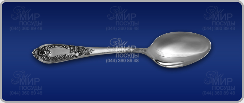 Ложка - это удобный и незаменимый предмет посуды за обеденным столом. Прибор изготовлен из мельхиора, и покрыт серебром 999,9° пробы. Эргономичная декорированная ручка хорошо лежит в руке. Элегантный эксклюзивный дизайн покорит в первого взгляда.