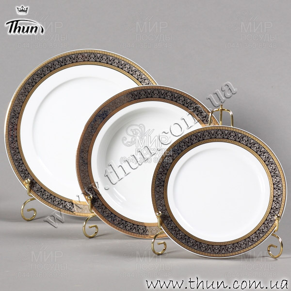 Мир посуды - Столовая посуда - Тарелки - Наборы тарелок 6/18 - Набор тарелок Opal Широкий кант платина, золото 6/18