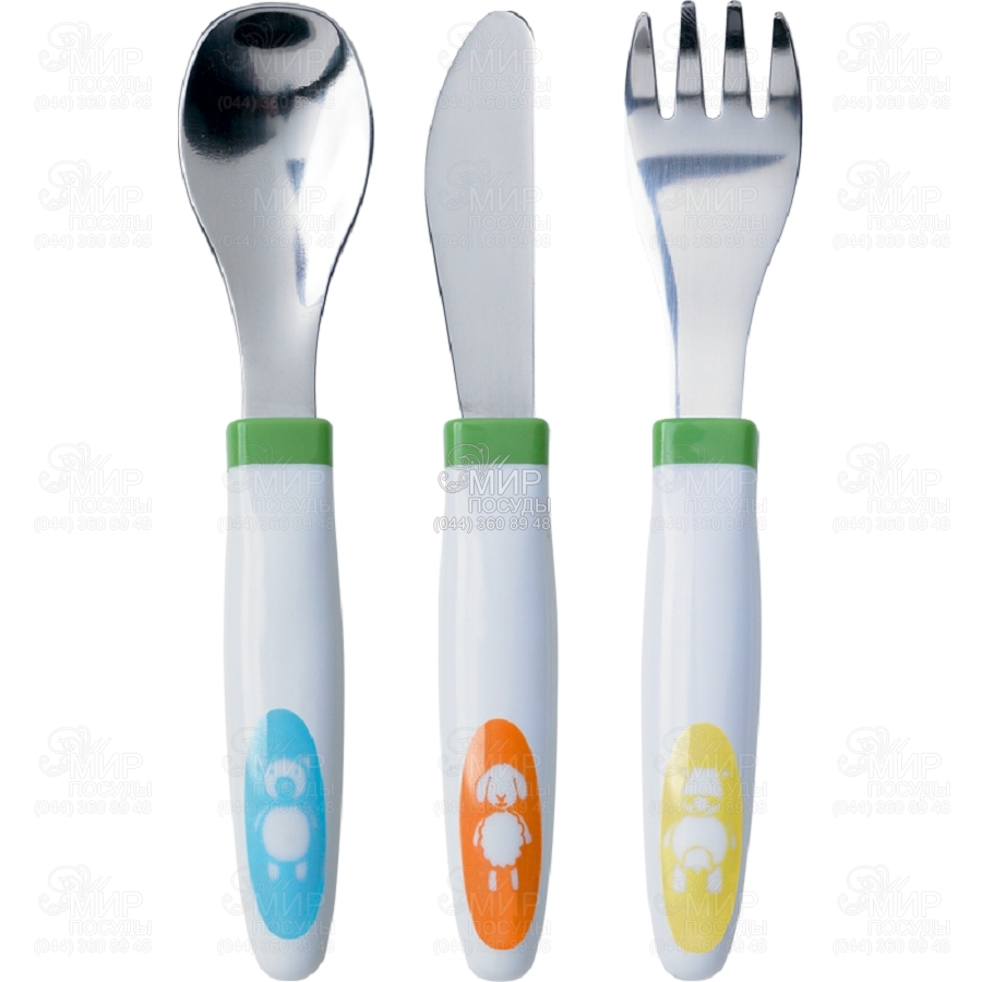 Набор детский столовых приборов - это отличный подарок любому ребенку, который поможет овладеть нехитрым мастерством столового этикета. Приборы изготовлены из высококачественной нержавеющей стали 18/10. В набор входят самые необходимые приборы, которые удобно лежат в маленькой руке благодаря эргономичной форме. Пластиковая ручка с рисунком приятна на ощупь, безопасна. Привлекательный дизайн доставит удовольствие малышу от приема пищи. Полированная поверхность обладает защитными свойствами, гигиенична, ее легко чистить.