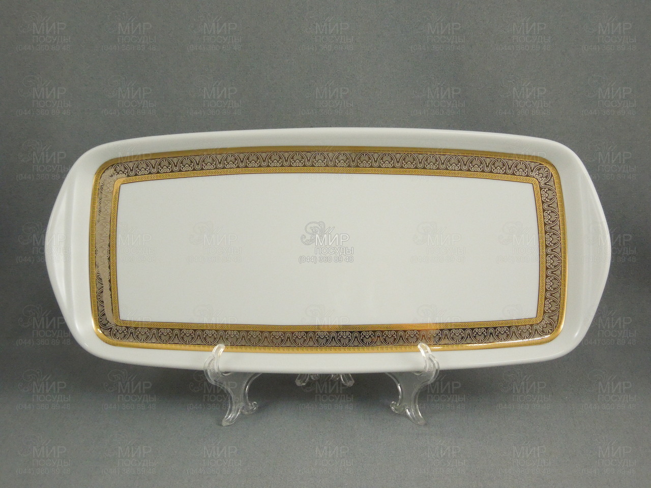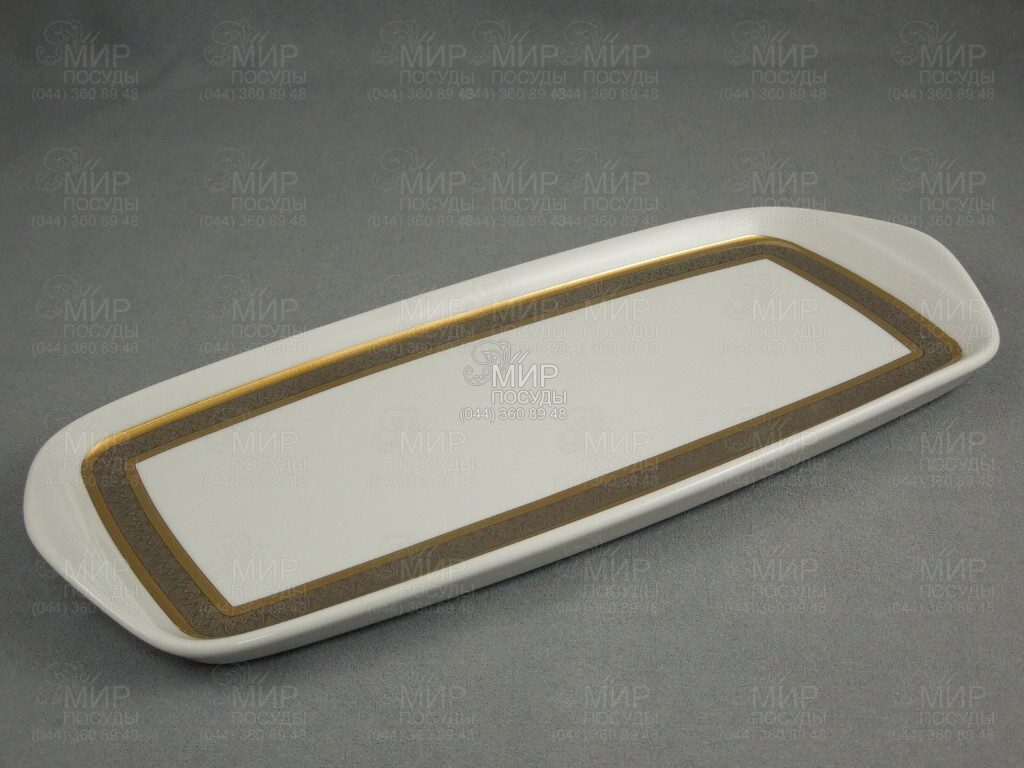 Мир посуды - Кухонная посуда - Подносы и столики - Подносы - Поднос прямоугольный Opal Широкий кант платина, золото 35см