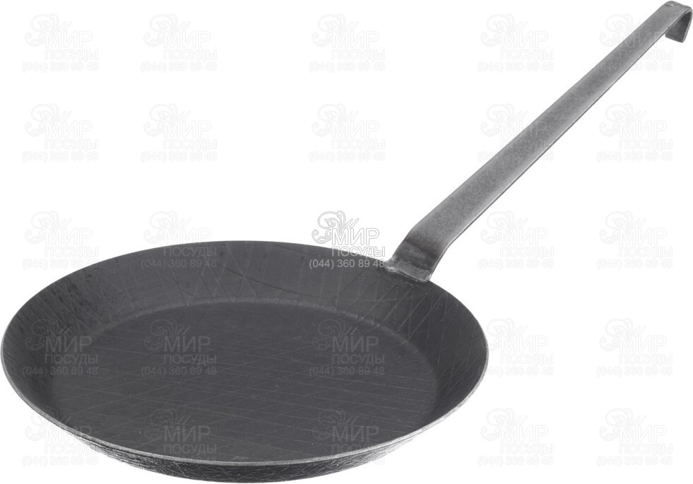 Традиционная скворода изготовлена из кованой стали. Такая сковорода прослужит долгие годы. Может быть использована на открытом огне или гриле. Сковорода быстро разогревается, экономя энергию. Удобная длинная ручка, выполненная из плоского стального прута, надежно приварена к сковороде. Крюк на конце ручки позволяет подвешивать сковороду.