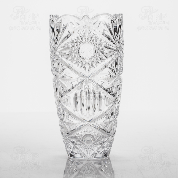 Высокая ваза предназначена для праздничных букетов, подчеркивает их красоту и пышность. Богемское хрустальное стекло - это всемирно известный продукт высокого качества, произведенный в Чехии. Широкий ассортимент продукции включает в себя посуду каждодневного использования, а так же эксклюзивные предметы, изготовленные вручную. Отличительной особенностью богемского хрусталя является отсутствие свинца, что обеспечивает безопасность Вашего здоровья. Вместо свинца используется оксид титана, который придает прочность посуде и стойкость к истиранию. Серия Miranda представлена декоративной посудой и вазами. Филигранная резьба, покрывающая всю площадь предметов отличается искусностью и богатством узоров.