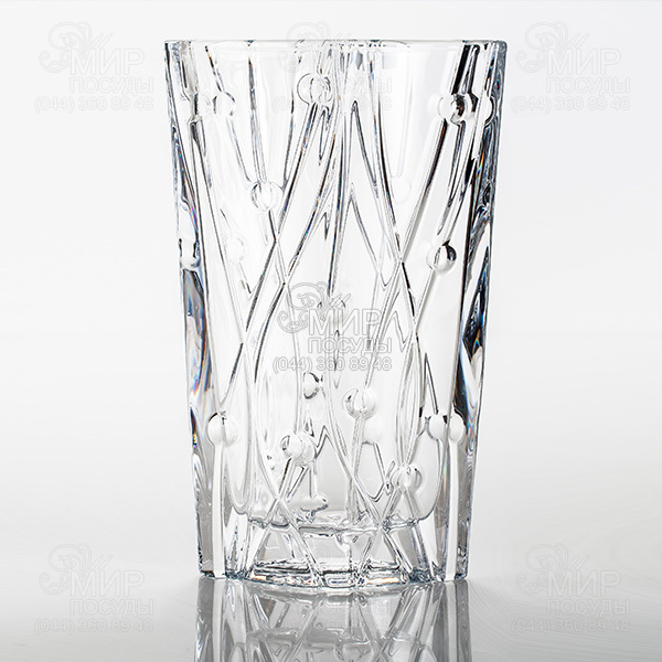 Высокая ваза предназначена для праздничных букетов, подчеркивает их красоту и пышность. Богемское хрустальное стекло - это всемирно известный продукт высокого качества, произведенный в Чехии. Широкий ассортимент продукции включает в себя посуду каждодневного использования, а так же эксклюзивные предметы, изготовленные вручную. Отличительной особенностью богемского хрусталя является отсутствие свинца, что обеспечивает безопасность Вашего здоровья. Вместо свинца используется оксид титана, который придает прочность посуде и стойкость к истиранию. Серия Labirinth отличается простотой и изысканностью. Прямые линии форм дополнены минимально резьбой в виде волнистых горизонтальных линий, перемежающихся с каплями воздуха. Данный дизайн делает аксессуары более прозрачными и невесомыми.