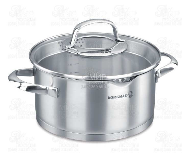 Кастрюля с крышкой из серии Steama турецкого производителя посуды Korkmaz отличается расширенными функциями и высоким качеством. Посуда изготовлена из хромникелевой нержавеющей стали марки 18/10. Инкапсулированное толстое дно превосходно распределяет тепло по всей поверхности, экономит энергию, необходимую для нагрева посуды. На внутреннюю стенку кастрюли нанесена шкала объема. Так же кастрюля снабжена удобным носиком, позволяющим переливать содержимое, не оставляя брызг. Крышка изготовлена из жаростойкого стекла, обрамленного широким стальным кольцом. В металлическом ободе крышки с противоположных сторон расположены две группы отверстий, крупные и мелкие. Они предназначены для слива жидкости из кастрюли. Для этого необходимо повернуть крышку так, чтобы отверстия нужного диаметра оказались точно напротив сливного носика кастрюли. Широкие стальные ручки не нагреваются, надежно прикреплены к посуде точечной сваркой. Посуда из нержавеющей стали подходит для всех типах плит, включая индукционные, так же может быть использована в духовом шкафу. Можно мыть в посудомоечной машине.
