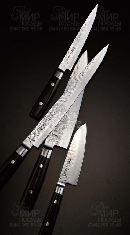 В основе клинков ножей серии ZEN лежит высококачественная японская сталь VG10, которая с обеих сторон закована в высокоуглеродистую сталь (по 18 слоев с каждой стороны). В результате получается пакет из 37-ми слоев. Ножи этой серии обладают превосходными режущими качествами, а закалка стали до твердости 61HRC по Роквеллу позволяет долгое время хранить превосходную заточку. Стилистическое решение, в виде следов ковки в верхней части клинков, делает ножи ZEN необычайно красивыми и уникальными.