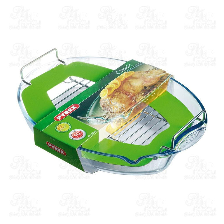 Форма для запекания серии Irresistible французской фирмы Pyrex глубокая, поэтому подойдет для приготовления любых блюд. Форма изготовлена из боросиликатного стекла, которое отличается повышенной термической стойкостью и повышенной стойкостью к механическим повреждениям. Закругленные края формы упрощают ее очищение. Посуда данной серии подходят для подачи готовой еды к столу непосредственно после ее приготовления. Удобные широкие ручки облегчают работу с формами. В комплетке с формой поставляется решетка из нержавеющей стали. Благодаря решетке Вы без труда приготовите блюда-гриль. Практичный материал позволяет использовать посуду в морозильной камере, духовом шкафу и микроволновой печи. Можно мыть в посудомоечной машине.