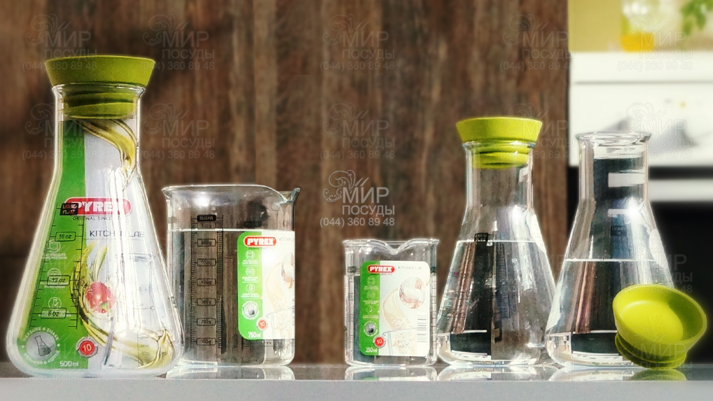 Серия предметов посуды Kitchen Lab ТМ Pyrex® отличается точностью в измерениях, свойственных только лабораторным емкостям. Измерительные стаканы и емкости для хранения масла, уксуса, прочих жидкостей и специй имеют детальную мерную шкалу. При этом вся посуда обладает высокой прочностью и стойкостью к термическому воздействию.