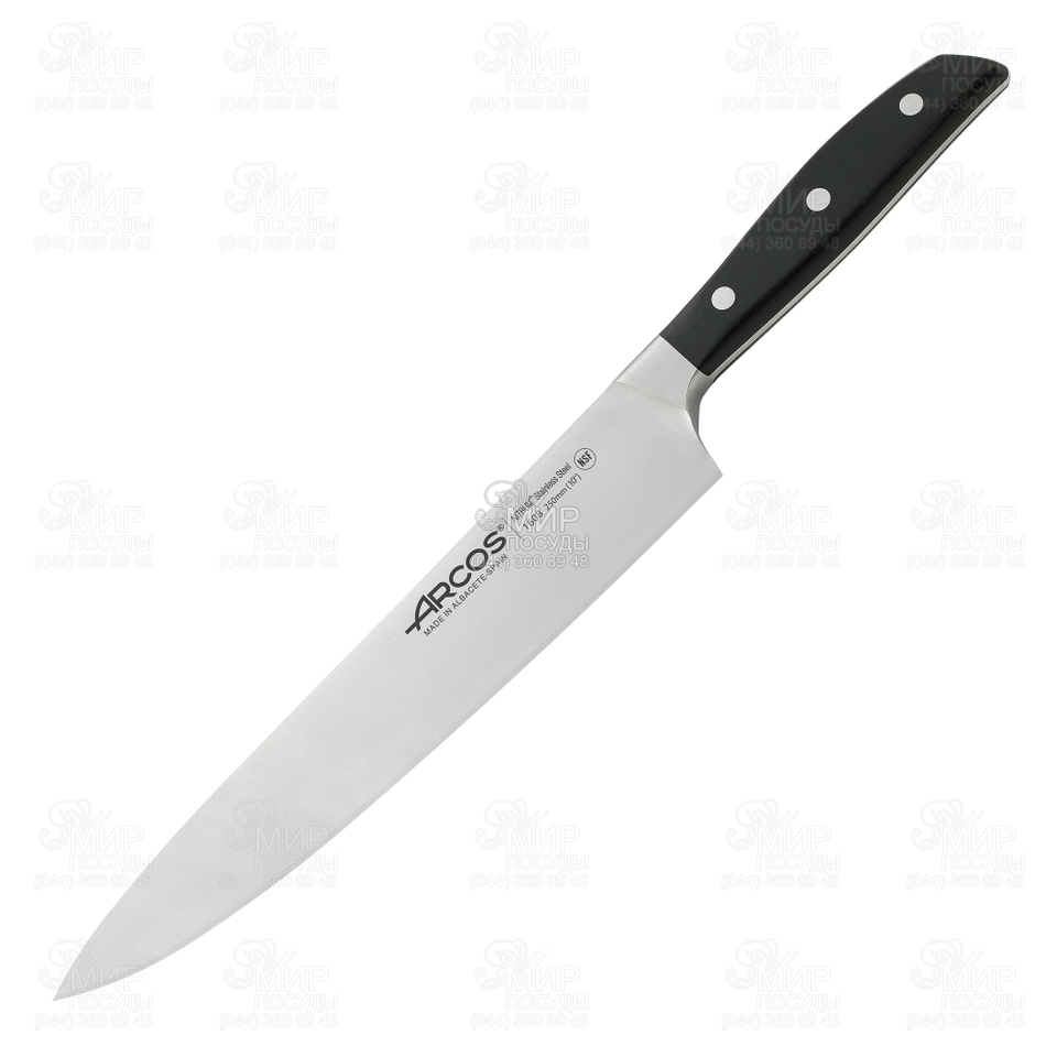 Основная гордость Arcos — нержавеющая сталь NITRUM, которая является эксклюзивным изобретением компания. Она обогащена азотом и поэтому долговечна, совершенно невосприимчива к коррозии и долго не требует заточки. А еще при производстве стали NITRUM не загрязняется окружающая среда. Не менее технологична рукоятка из полиоксиметилена — полимера с добавлением оксидом кремния. Инновационный материал обладает удивительными ударопрочными свойствами.Серия MANHATTAN состоит из ножей поварских, для чистки и нарезки, для окорока, хлеба, овощей и т. д. Все они имеют разные форму и назначение, но есть одна объединяющая черта — первоклассное качество Arcos. В ножах серии MANHATTAN применена новейшая технология обработки лезвия — «шелковый край». Благодаря этому острота ножа практически идеальна, а начальная режущая способность сохраняется более длительное время.