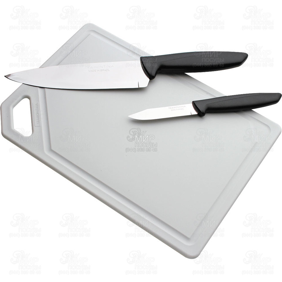 Набор ножей Plenus от бразильской компании Tramontina изготовлен нержавеющей стали AISI 420, которая отличается хорошей коррозийной стойкостью и продолжительным сроком службы. Ручка выполнена из полипропилена, обладающего высокой термостойкостью и ударной прочностью.