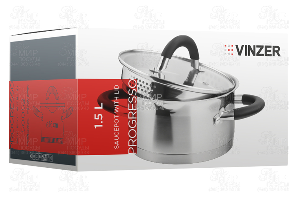 Кастрюля Progresso от швейцарского бренда Vinzer изготовлена из нержавеющей стали Ferrinox 18/10. Емкость оснащена прочными стальными ручками с силиконовыми вставками, крепятся заклепочным методом и по этому не нагреваются. А капсульное дно способствует быстрому приготовлению еды, которая меньше подвергается высоким температурам. Такой режим приготовления сохраняет больше полезных веществ в продуктах, повышая биологическую ценность блюда. Кастрюля укомплектована термостойкой стеклянной крышкой с отверстием для выпуска пара. Для большего комфорта пользования емкость оснащена мерной шкалой и удобным носиком.