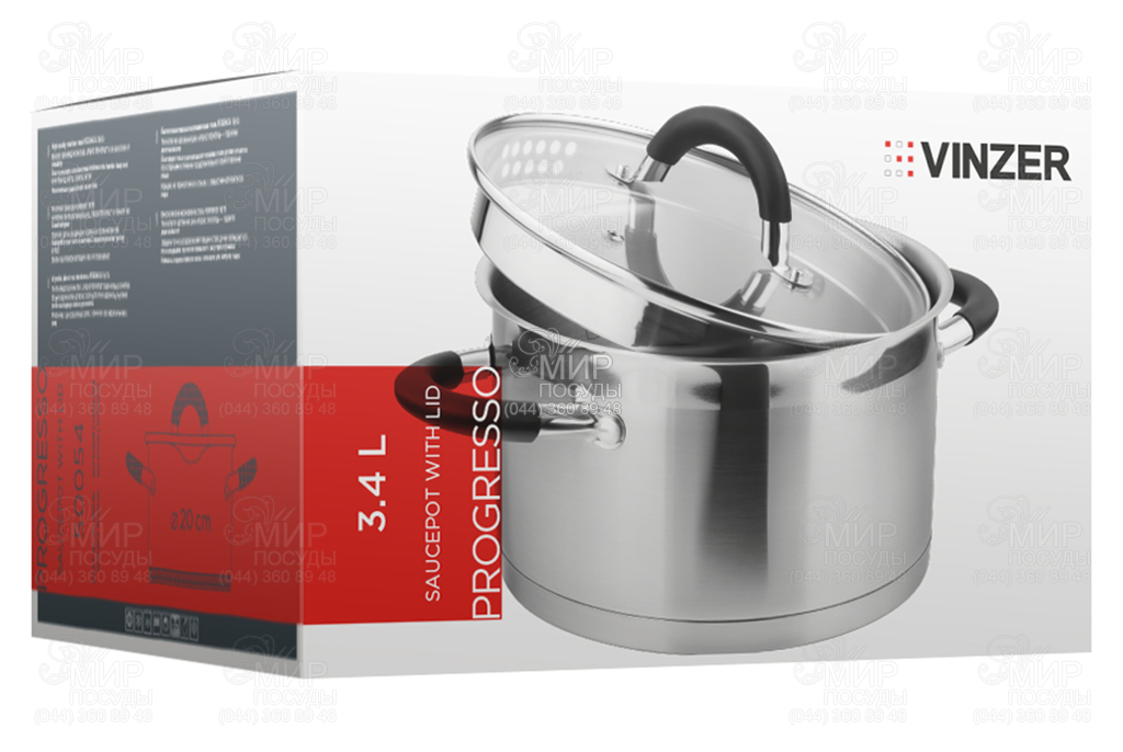 Кастрюля Progresso от швейцарского бренда Vinzer изготовлена из нержавеющей стали Ferrinox 18/10. Емкость оснащена прочными стальными ручками с силиконовыми вставками, крепятся заклепочным методом и по этому не нагреваются. А капсульное дно способствует быстрому приготовлению еды, которая меньше подвергается высоким температурам. Такой режим приготовления сохраняет больше полезных веществ в продуктах, повышая биологическую ценность блюда. Кастрюля укомплектована термостойкой стеклянной крышкой с отверстием для выпуска пара. Для большего комфорта пользования емкость оснащена мерной шкалой и удобным носиком.