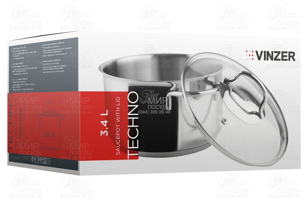 Кастрюля Techno от швейцарского бренда Vinzer изготовлена из нержавеющей стали Ferrinox 18/10. Емкость оснащена прочными стальными ручками, которые прикреплены методом точечной пайки, благодаря чему они не нагреваются. А капсульное дно способствует быстрому приготовлению еды, которая меньше подвергается высоким температурам. Такой режим приготовления сохраняет больше полезных веществ в продуктах, повышая биологическую ценность блюда. Кастрюля укомплектована термостойкой стеклянной крышкой с отверстием для выпуска пара. Для комфортной дозировки емкость оснащена мерной шкалой.