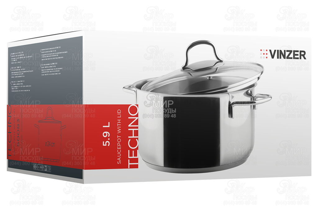 Кастрюля Techno от швейцарского бренда Vinzer изготовлена из нержавеющей стали Ferrinox 18/10. Емкость оснащена прочными стальными ручками, которые прикреплены методом точечной пайки, благодаря чему они не нагреваются. А капсульное дно способствует быстрому приготовлению еды, которая меньше подвергается высоким температурам. Такой режим приготовления сохраняет больше полезных веществ в продуктах, повышая биологическую ценность блюда. Кастрюля укомплектована термостойкой стеклянной крышкой с отверстием для выпуска пара. Для комфортной дозировки емкость оснащена мерной шкалой.