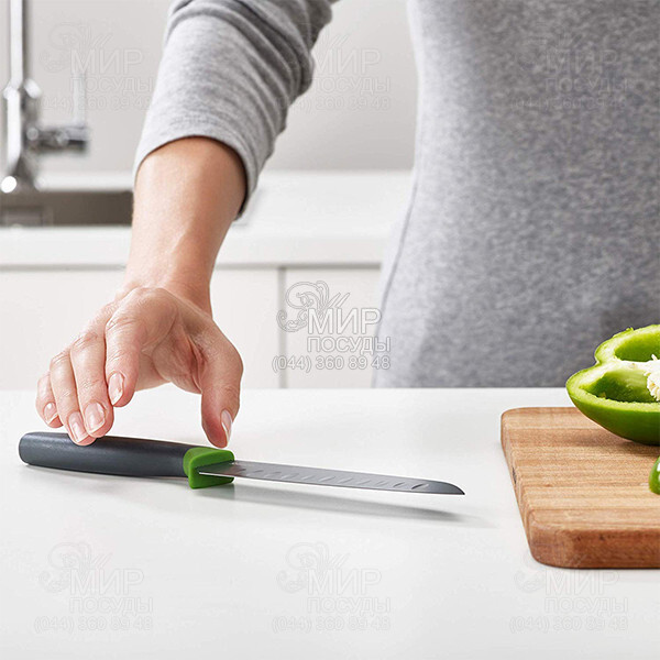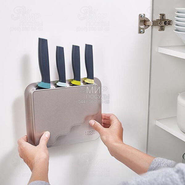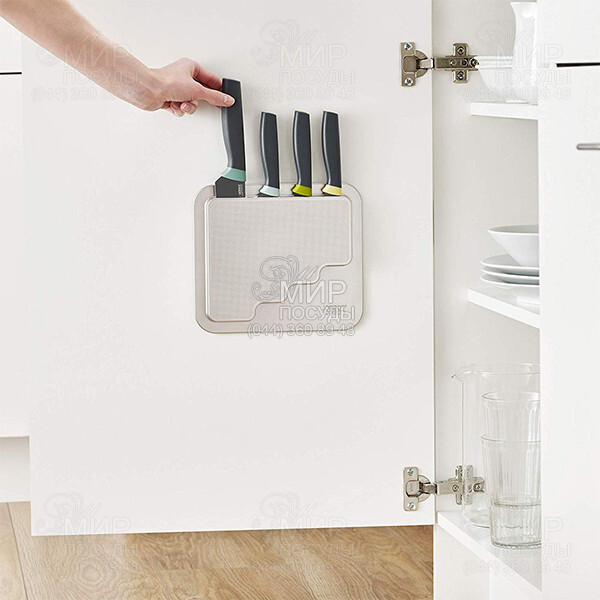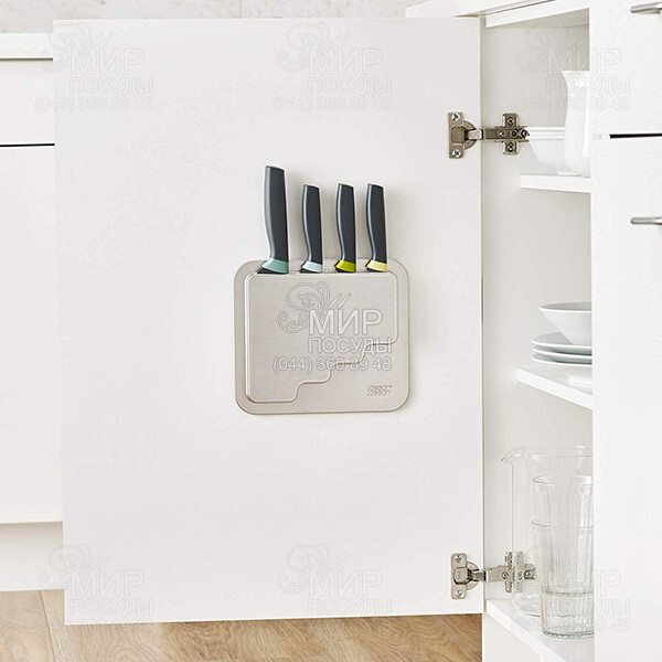 Набор ножей Elevate от английского производителя Joseph Joseph в металлическом подвесном кейсе DoorStore – это один из бестселлеров компании. Стильные, прочные, функциональные и практичные, эти ножи создадут праздник на Вашей кухне. Кейс поставляется с прочной клейкой лентой 3M VHB на оборотной стороне, что делает его очень простым для установки на чистую плоскую поверхность. Их особенность в том, что они не соприкасаются с поверхностью рабочего стола благодаря специальной рукоятке с "ножкой". А это в разы повышает гигиену на кухне. Ножи сделаны из высококачественной нержавеющей стали и покрыты силиконовым напылением - благодаря этому пища не прилипает к лезвию. Рекомендуется только ручная мойка.