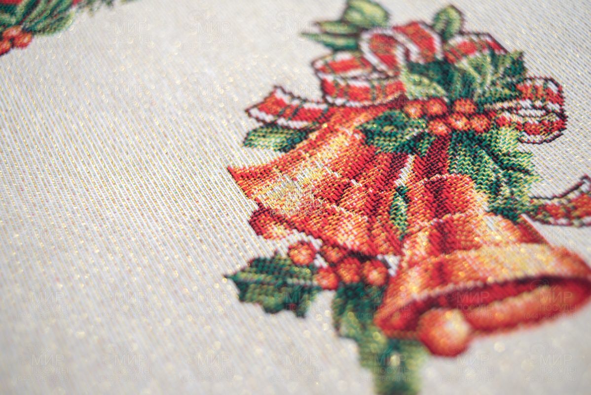 Салфетка от Villa Grazia Premium изготовлена из гобелена. Яркая красная окантовка с гирляндой из падуба стала обрамлением для праздничной картинки, вытканной на плотном гобелене премиум качества. Золотистые колокольчики и нарядные ёлочные шарики выглядят еще более красочно и эффектно в сиянии искорок люрекса, вплетенного в центральную часть салфетки. Полотно для этого изделия изготавливается на испанской фабрике и отличается безупречным европейским качеством.