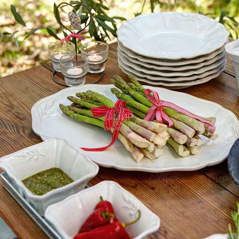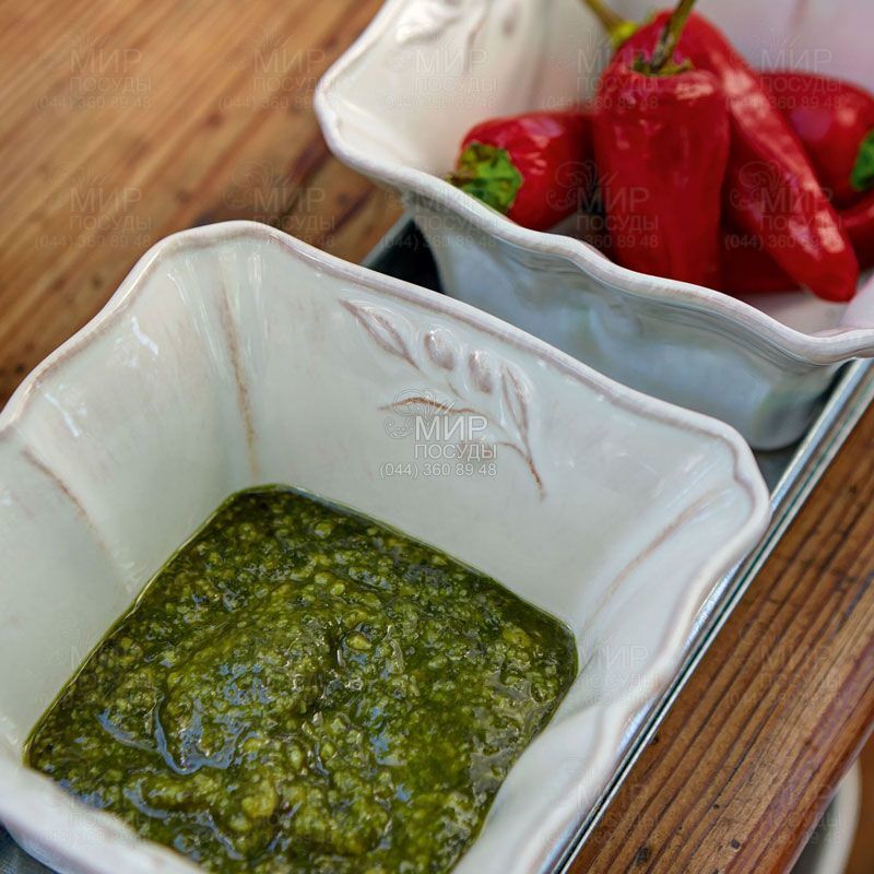 Соусник Alentejo от португальского производителя Costa Nova изготовлен из огнеупорной керамики в стиле прованс. По форме напоминает распустившийся цветок с волнистым краем. Декорирован боковым тисненным орнаментом миниатюрной веточкой оливы. Емкость удобна для подачи меда, клубники со сливками или жюльена, так же в ней можно испечь кекс или шарлотку.