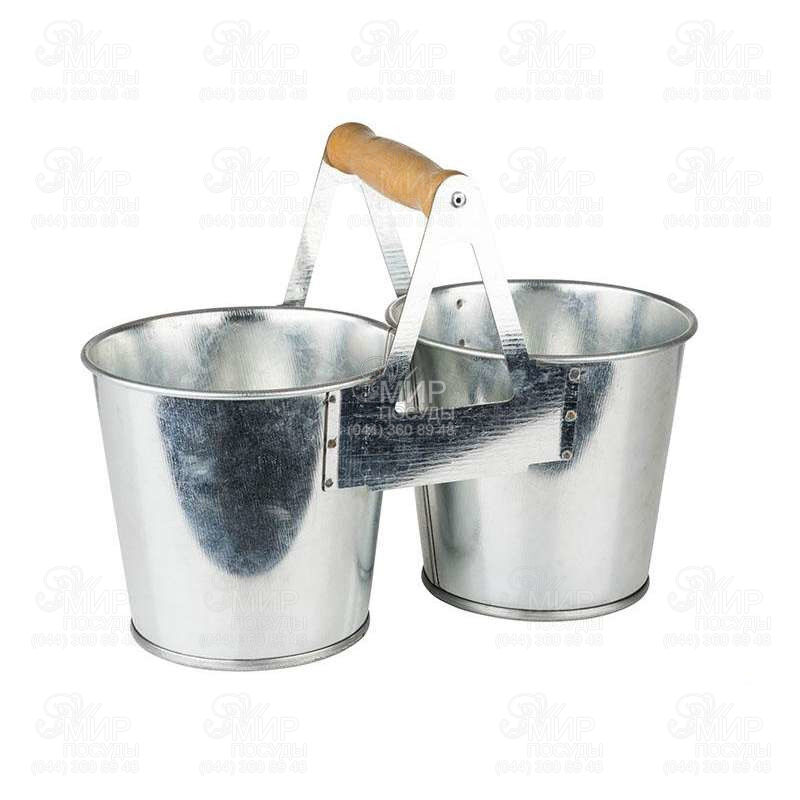 Специализированная емкость от немецкого производителя APS изготовлена из нержавеющей стали. Создано в виде двойного ведерка и может быть использовано как для столовых приборов, так и для подачи блюд.