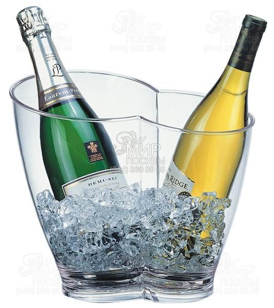 Ведро для шампанского от немецкого производителя APS выполнено из прочного прозрачного акрила. Имеет два отсека для охлажения бутылок и очень оригинальную изящную форму. Это изделие может украсить стол, например, для романтического ужина. В нем можно подавать не только любимый игристый напиток, но и просто вино или другие напитки, требующие охлаждения перед подачей.