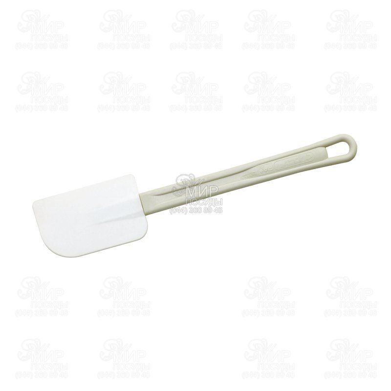 Кондитерская лопатка о итальянского производителя Paderno используется на предприятиях общественного питания и торговли для смешивания ингредиентов, вымешивания теста, промазывания и выравнивания крема, глазури и шоколада на поверхности кондитерских изделий. Изделие имеет ручку с отверстием на конце для удобного хранения. Рабочая часть изделия выполнена из пластика, способного выдерживать температуру до 220 °С.