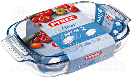 Набор форм для запекания CLASSIC от французского производителя PYREX изготовлен из боросиликатного стекла. В комплект входят два предмета, которые обладают прямоугольной формой с небольшими ручками и идеально гладкими стенками. В таких формах можно запекать и выпекать что угодно. Начиная десертами и заканчивая мясными блюдами.