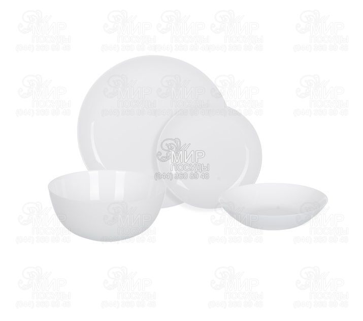 Столовый сервиз Diwali от французского производителя Luminarc изготовлен из ударопрочного стекла. Комплект белого цвета станет настоящим украшением обеденного стола.