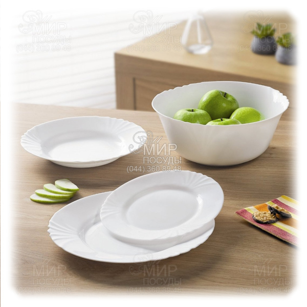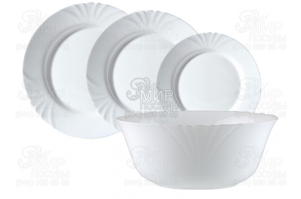 Столовый сервиз Cadix от французского производителя Luminarc изготовлен из ударопрочного стекла. Комплект белого цвета станет настоящим украшением обеденного стола.