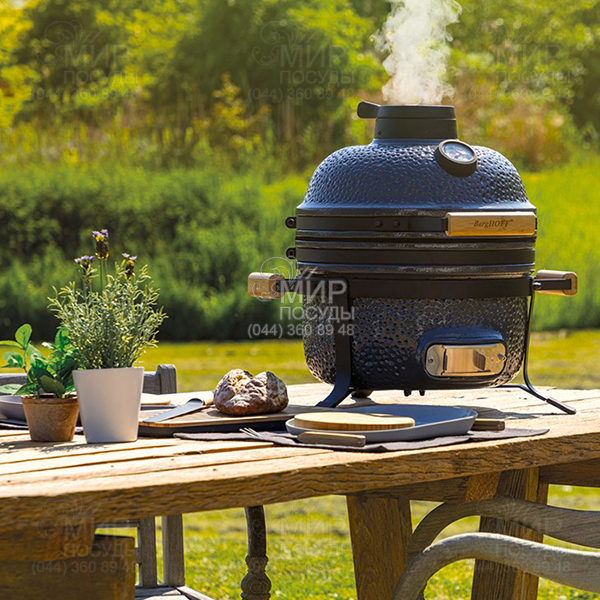 Керамический гриль от BergHOFF - это устройство, которое позволит воплотить в жизнь все кулинарные идеи и сделает отдых на природе незабываемым. Вы можете использовать самые различные техники приготовления: жарка, выпекание, запекание, медленное томление, копчение и даже приготовление первых блюд. При этом блюда, приготовленные в такой печи, всегда остаются сочными. Печь выполнена из уникальной термостойкой керамики, поэтому ей не страшны резкие перепады температуры. Колпачок верхнего вентиляционного отверстия позволяет с точностью регулировать поступление воздуха, а термометр на рессорной крышке контролирует внутреннюю температуру для правильного процесса приготовления. Гриль изначально комплектуется специальным гнездом, в котором его удобно переносить и использовать. Он вполне сможет приготовить 3-4 стейка или запечь целую курицу. А благодаря удобным размерам Вы без проблем сможете использовать его на балконе или перевозить в багажнике.
