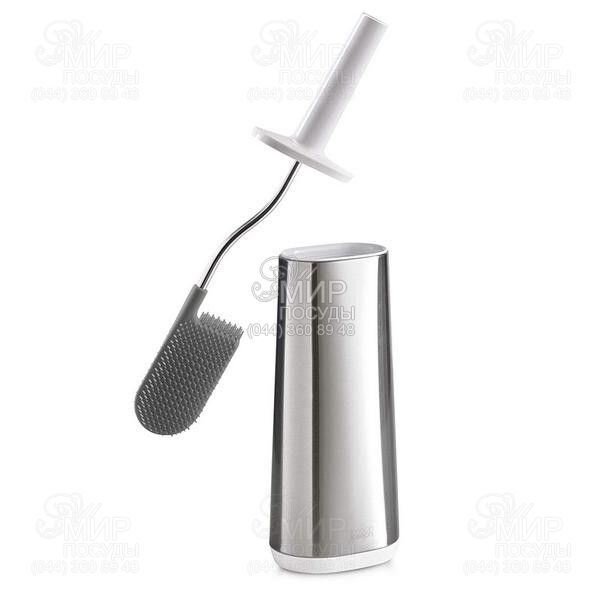 Ершик для унитаза от английской компании Joseph Joseph изготовлен из высококачественных материалов. Инновационный аксессуар, который решает все проблемы поддержания чистоты и порядка санузла. Он был создан с учётом всех минусов обычных ёршиков. Гибкая полимерная щетка эффективно очищает все труднодоступные места и не впитывает воду. Высокотехнологичный материал ёршика не притягивает грязь и его легко мыть. Двухуровневая щетина с большим расстоянием между щетинками не дает грязи скапливаться. После уборки ёршик не надо стряхивать, пытаясь очистить и высушить, благодаря уникальному дизайну Flex, вода быстро стекает со щетки и не оставляет лишних капель. При уборке с отбеливающими средствами стоит избегать его попадания на ручку из нержавеющей стали. Удобная и компактная подставка дополняет этот эргономичный аксессуар и не занимает много места.