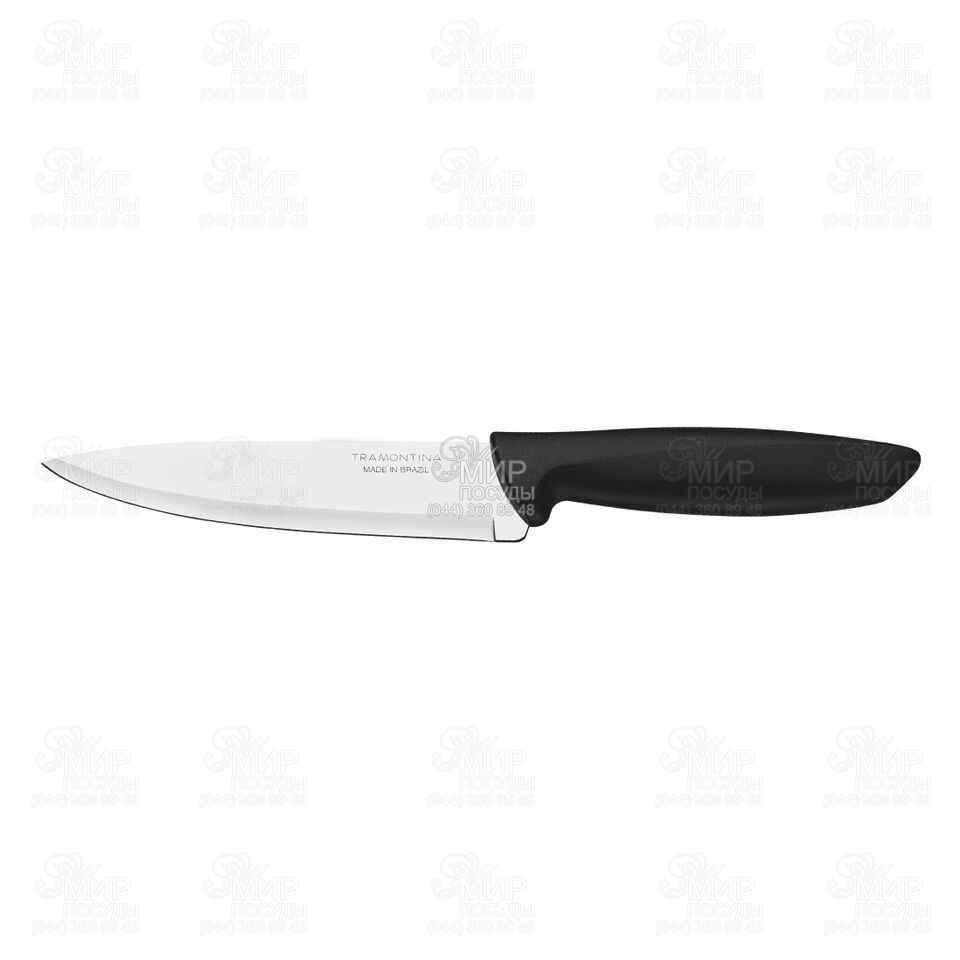 Нож повара серии Plenus от бразильской компании по производству посуды Tramontina прослужит Вам долгие годы. Лезвие ножа изготовлено из мартенситной нержавеющей стали AISI 420, которая отличается хорошей коррозийной стойкостью, продолжительным сроком службы. Так же, благодаря термообработке прочность стали увеличивается. Ручка выполнена из полипропилена, обладающего высокой термостойкостью и ударной прочностью.