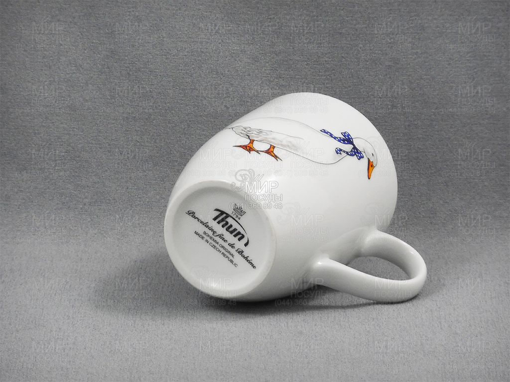 Кружка от чешского производителя Thun изготовлена из фарфора. Несравненная модель обладает привлекательной формой и задекорирована изысканным принтов в виде гусей с прочным покрытием. Данной посудой можно засервировать самый шикарный стол или обычный домашний ужин. Низкая теплопроводность материала долго сохраняет тепло.