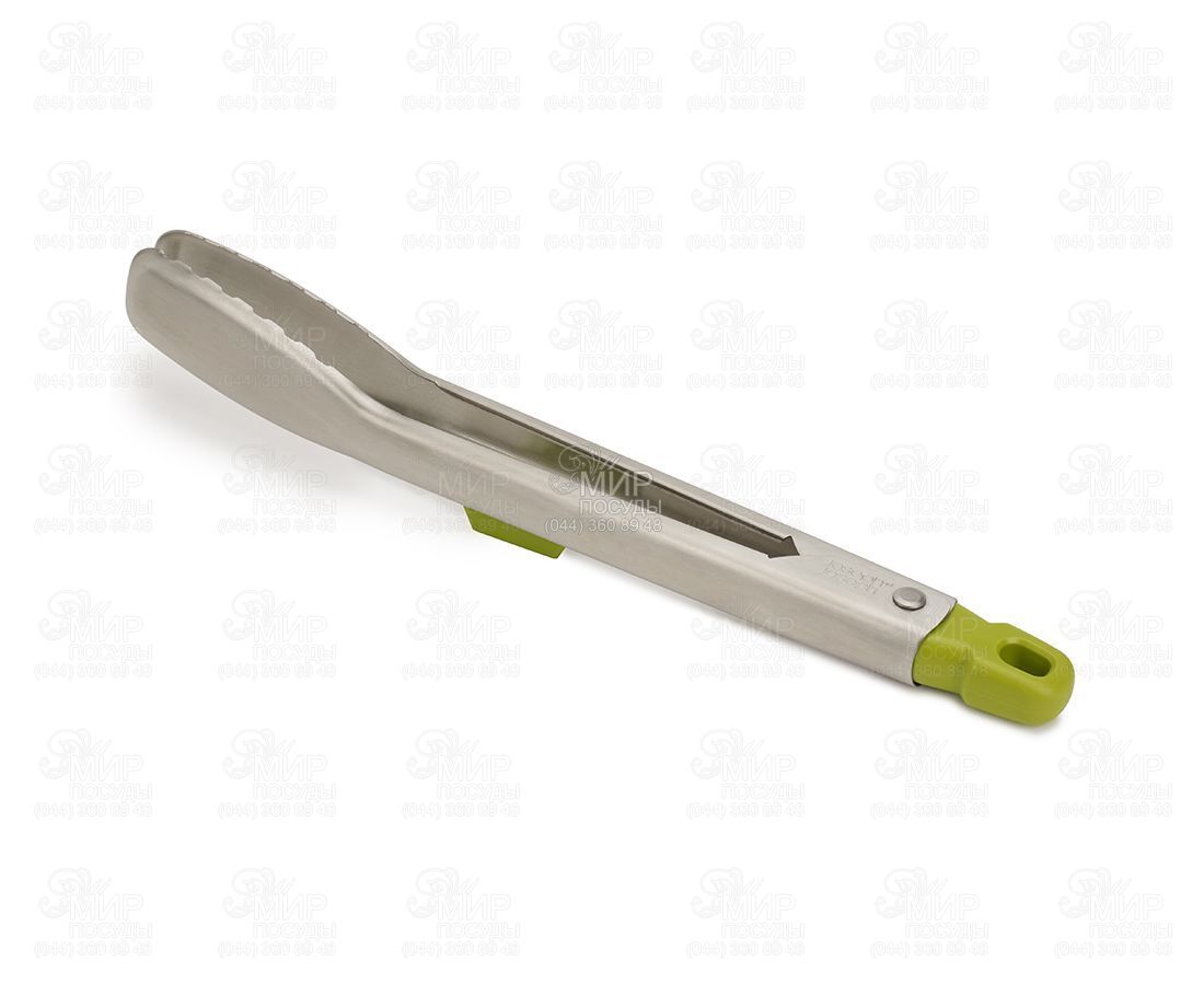 Кухонные щипцы от английского производителя Joseph Joseph созданы из нержавеющей стали и входят в серию кухонных приборов Elevate, разработанную для поддержания максимального порядка во время приготовления пищи. Специальный утяжелитель в рукоятке постоянно удерживает наконечники на весу, благодаря чему они не касаются рабочей поверхности. Запираемый механизм на рукоятке фиксирует щипцы в закрытом положении. Стальные наконечники обеспечивают точное сцепление, что позволяет щипцам справиться с переворачиванием продуктов во время жарки, а также сервировкой готовых блюд.