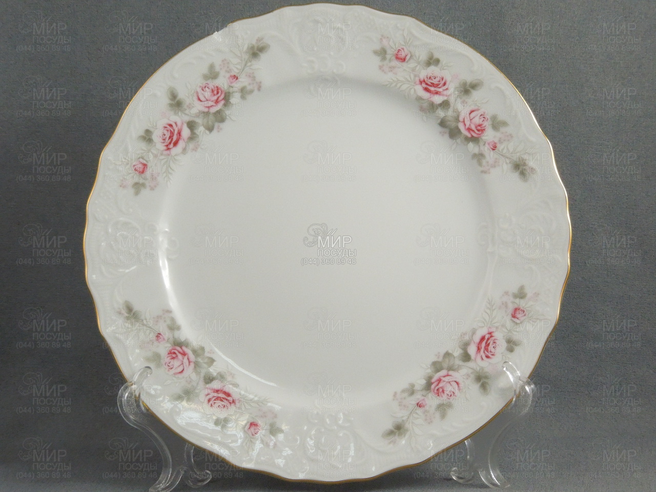 Тарелка для торта Bernadotte Бледные розы с золотой каймой 27см