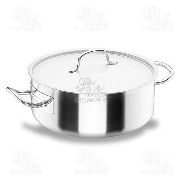 Кастрюля низкая с крышкой для профессиональной кухни относится к сегменту профессиональной посуды для кафе, ресторанов и других заведений общественного питания. Изготавливается из высококачественной нержавеющей стали 18/10 (18% хрома, 10% никеля): хром придает сплаву твердость и химическую стойкость, никель - износоустойчивость и яркость. Профессиональная посуда для кухни устойчива к коррозии и не содержит вредных примесей, она менее пориста, благодаря чему поверхность изделия не меняется со временем и служит дольше. Ручки изготовлены из нержавеющей стали, надежно крепятся методом точечной пайки, что не позволяет им нагреваться во время приготовления пищи.