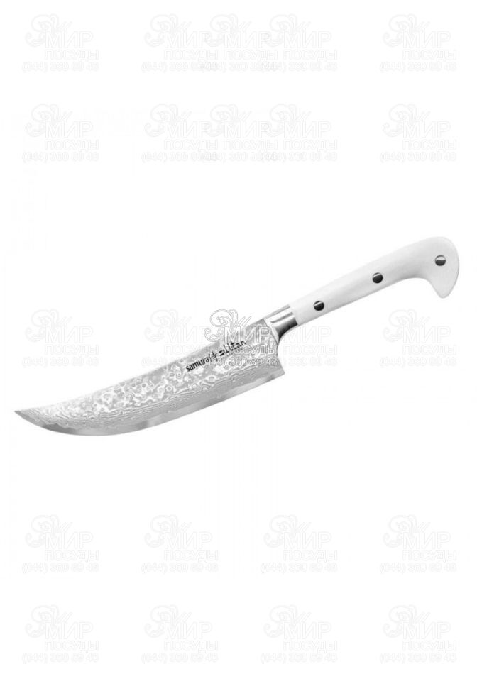Нож Пчак Sultan от японского производителя Samura изготовлен из дамасской стали. Sultan – оригинальная коллекция азиатских кухонных ножей. Своим происхождением обязана вековым ножевым традициям народов, населявших ранее территорию Великой Османской империи. Ножи данной серии идеально подходят для приготовления блюд восточной кухни, для нарезки овощей, зелени и не только.