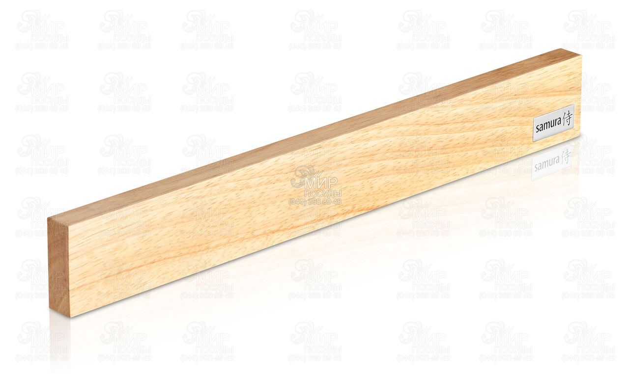 Магнитный держатель для металлических кухонных ножей, крепится на стену или дверцу шкафа, под правую или под левую руку. В отличие от подставки для ножей, не занимает место на рабочей поверхности. Изготовлен из плотного и прочного каучукового дерева - гевеи, которая практически не впитывает влагу, что крайне важно при хранении на кухне. Магнит "спрятан", поэтому лезвия ножей не царапаются. Не подходят для хранения керамических и керамотитановых ножей. Удобный аксессуар станет украшением на любой кухне.
