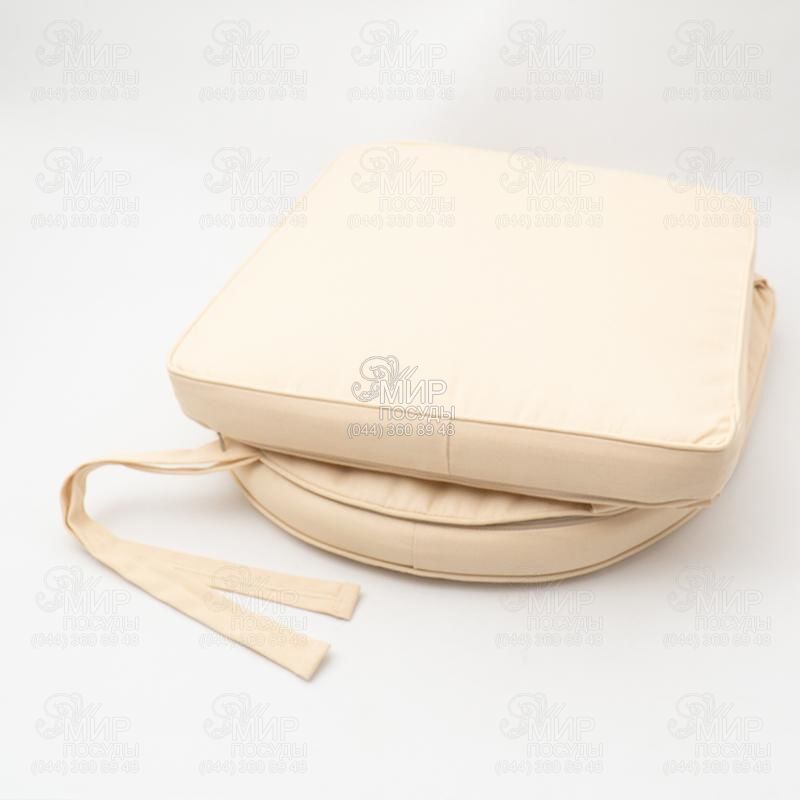 Декоративные подушки бежевого цвета для стула произведены из прочного материала с тефлоновым покрытием, обладают износостойкостью и долговечностью. По краю пришит кант.