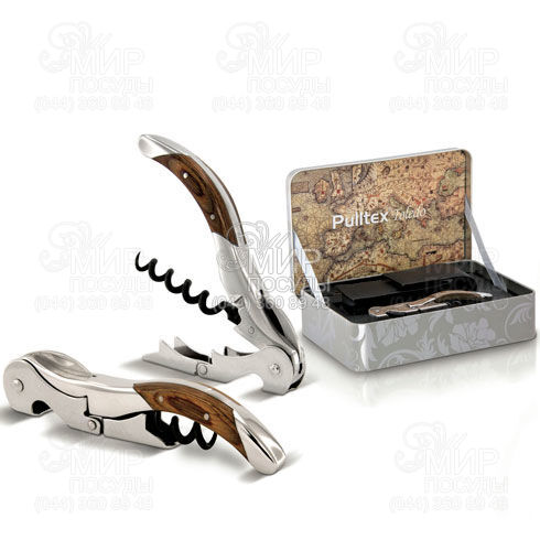 Раскладной штопор Pulltap's Toledo Set De Luxe из прочной нержавеющей стали от бренда Pulltex. Ручка штопора украшена вставками из натурального дерева. Его запатентованная система двойных рычагов позволяет легко и удобно извлекать пробку любой длины в два этапа. Быстро и эффективно откупоривает все виды пробок. Эта модель широко используются профессионалами в барах и ресторанах. Штопор разработан специалистами Pulltex, бренда, известного своими патентованными аксессуарами для быстрого и удобного обслуживания вина.