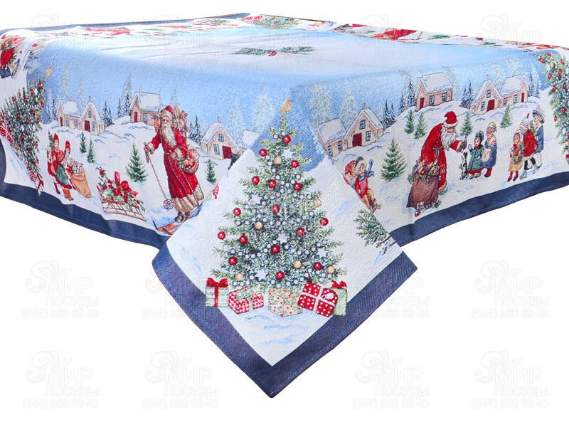 Скатерть с люрексом от испанского производителя Lefard Spain изготовлена из гобелена. Зимние святки приносят в наши дома атмосферу радостных чудес и доброй новогодней сказки. Подчеркнуть красоту этих праздников поможет красочный гобеленовый текстиль с рисунком в рождественской стилистике. Категорически не допускается применение отбеливателя, смягчителя ткани или химическая чистка. Гладить скатерти после стирки следует с обратной стороны.