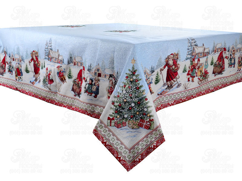 Скатерть с люрексом от испанского производителя Lefard Spain изготовлена из гобелена. Зимние святки приносят в наши дома атмосферу радостных чудес и доброй новогодней сказки. Подчеркнуть красоту этих праздников поможет красочный гобеленовый текстиль с рисунком в рождественской стилистике. Категорически не допускается применение отбеливателя, смягчителя ткани или химическая чистка. Гладить скатерти после стирки следует с обратной стороны.