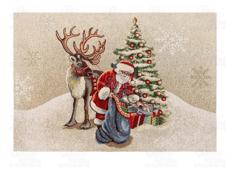 Салфетка от испанского производителя Lefard Spain изготовлена из гобелена. Зимние святки приносят в наши дома атмосферу радостных чудес и доброй новогодней сказки. Подчеркнуть красоту этих праздников поможет красочный гобеленовый текстиль с рисунком в рождественской стилистике. Категорически не допускается применение отбеливателя, смягчителя ткани или химическая чистка. Гладить изделие после стирки следует с обратной стороны.