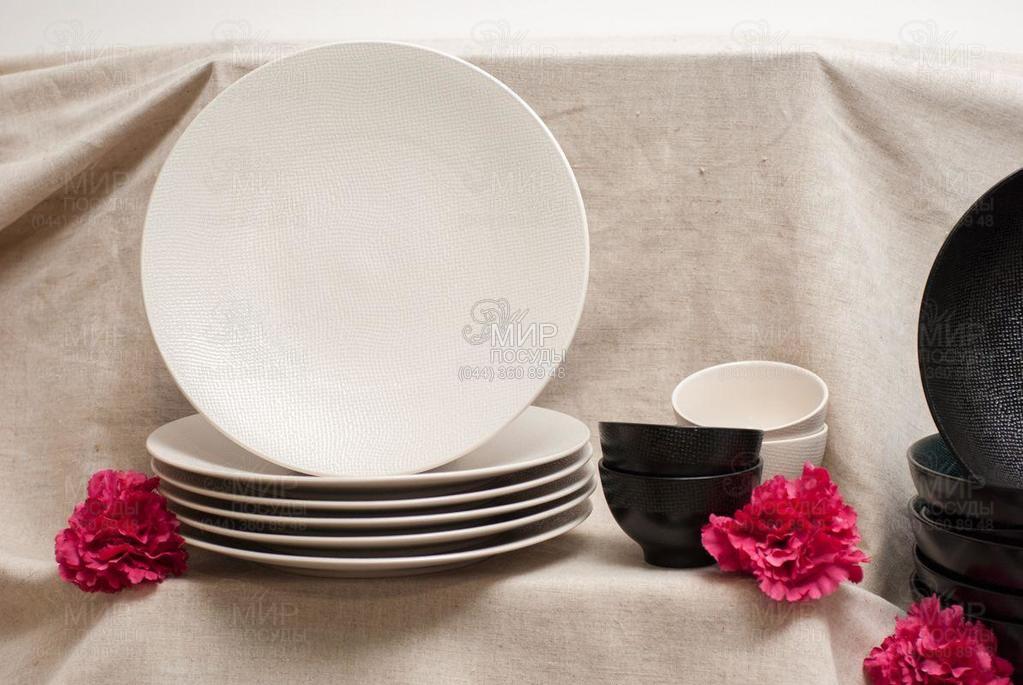 Керамические обеденные тарелки выполнены в белом цвете с текстурой. Традиционная белая посуда найдет себе достойное место в любом доме. А если надо внести в сервировку более современный креативный акцент, то стоит обратить внимание на продукцию компании Bastide. Белые обеденные тарелки имеют удобную классическую форму и размер. Особенно эффектно они выглядят в комбинации с черными предметами из серии Vesuvio. Нижняя сторона изделия идеально гладкая с благородным полуглянцевым финишем. Внутренняя поверхность тарелки декорирована рельефной текстурой, создающей впечатление отпечатка грубого холста.