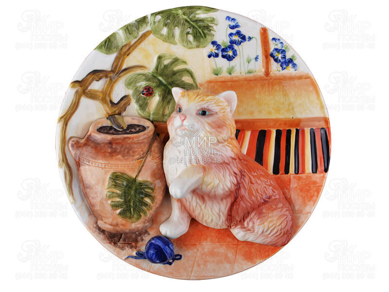 Мир посуды - Домашний интерьер - Декоративные тарелки - Тарелка декоративная Кошка и ваза 18см 59-120