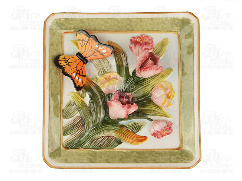 Мир посуды - Домашний интерьер - Декоративные тарелки - Тарелка декоративная Бабочка с тюльпанами 21см 59-409