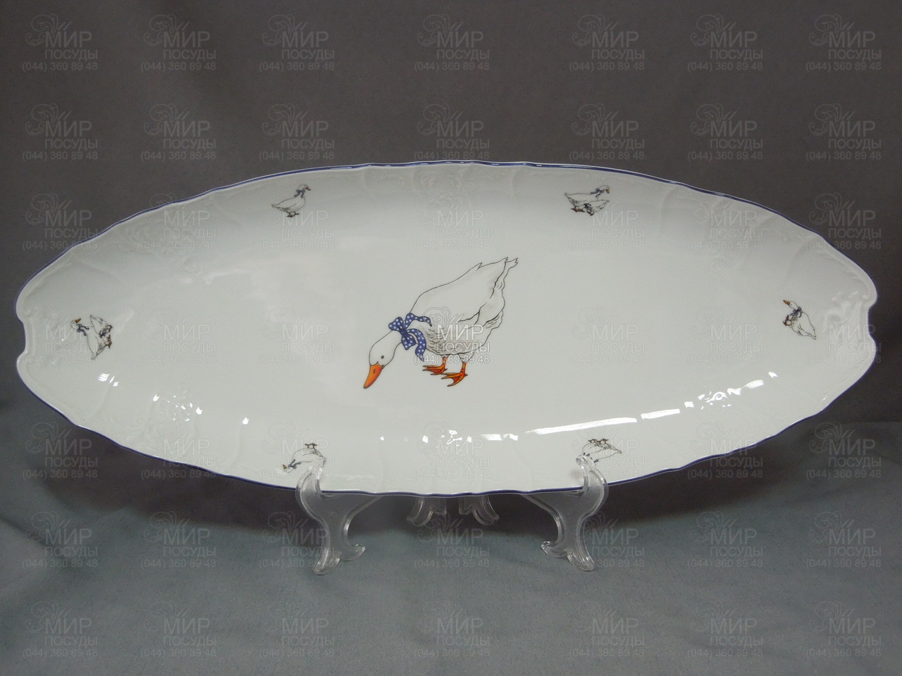 Мир посуды - Столовая посуда - Блюда - Блюда для рыбы - Блюдо для рыбы Bernadotte Гуси голубой кант голубой кант 52см